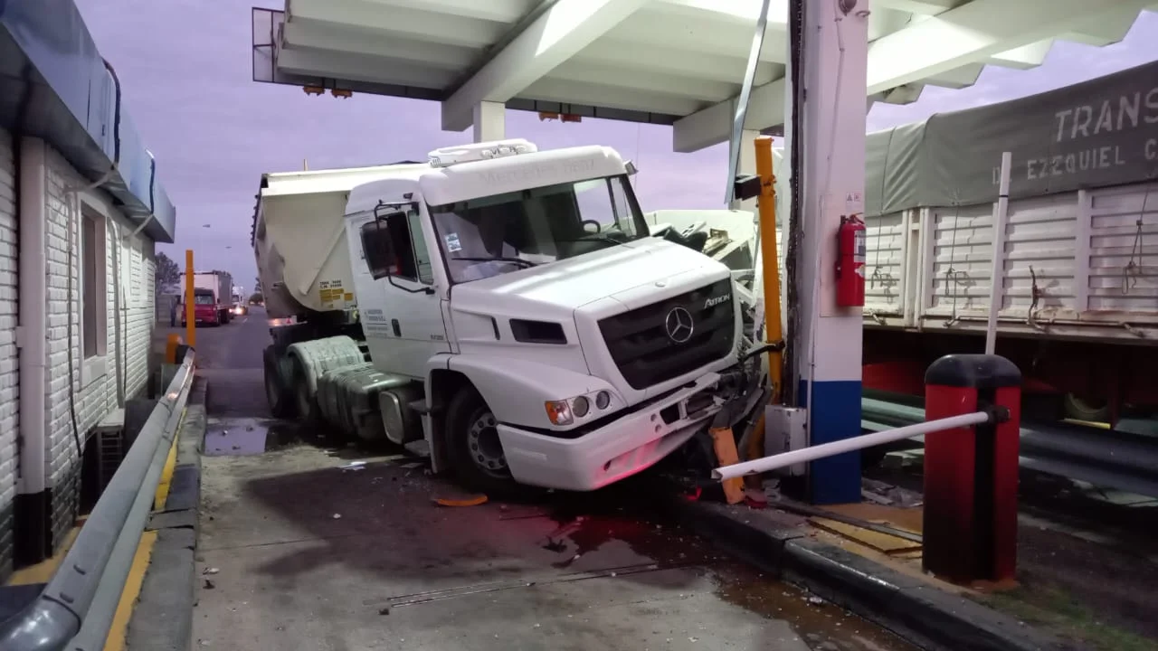 Según las primeras informaciones, cerca de las 6.30 un camión impactó de lleno con la cabina del peaje provocando enormes daños materiales como se ve en las imágenes.