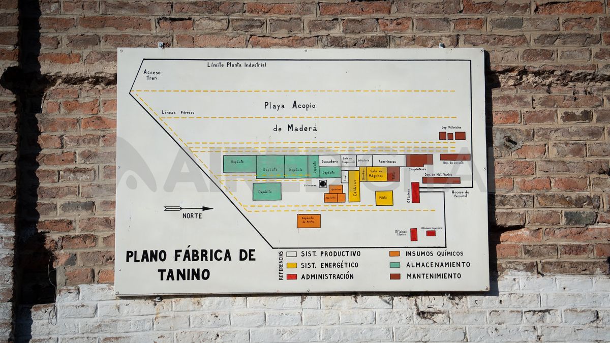 El lugar donde funcionaba el sistema energético de la fábrica se puede reconocer con facilidad. Grandes bloques de cementos con tornillos oxidados dan cuenta de que allí reposaron las calderas, bombas y maquinarias pesadas necesarias para transformar el quebracho en tanino. Además, resisten al paso del tiempo aquellos sectores que alguna vez fueron oficinas administrativas y parte del sistema productivo. En total, solo quedan 11 salas de las 26 que componían el poderoso predio fabril.